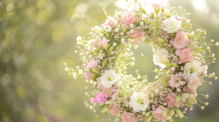 Elevate your space! A wreath crafted from eustoma and gypsophila flowers brings a touch of sophistication and nature's beauty to any setting