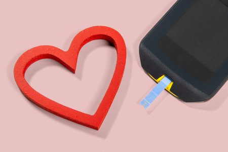 diabetes and heart related problems showing glucose meter and a heart shape