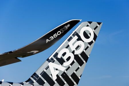 Airbus a350-900 XWB View of the tail and wingtips sharklet. Russia, Moscow region Zhukovsky, airport Ramenskoe. Aviasalon MAKS 2019. 29 august 2019