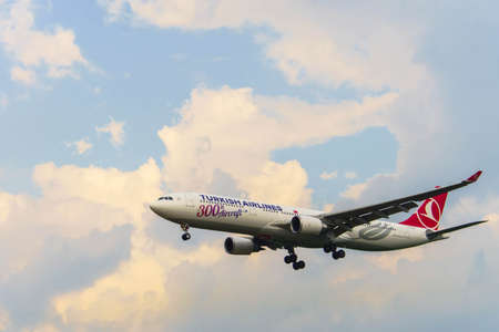 July 2, 2019, Moscow, Russia. Airplane Airbus A330-300 Turkish Airlines at Vnukovo airport in Moscow.