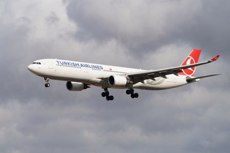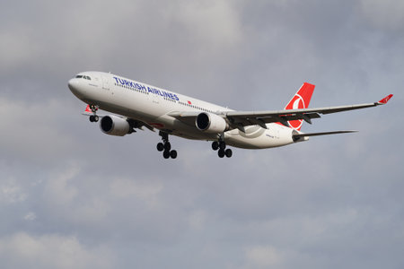 ISTANBUL, TURKIYE - JULY 11, 2024: Turkish Airlines Airbus A330-303 (1644) landing to Istanbul International Airport