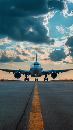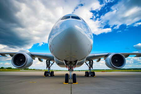 Frontal view of an aircraft on an airport runway