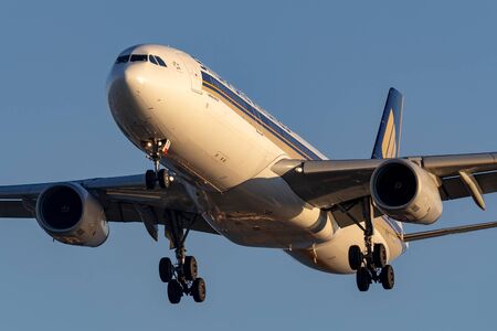 Adelaide, Australia - June 10, 2013: Singapore Airlines Airbus A330-343 9V-STI on approach to land at Adelaide Airport.