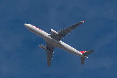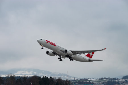 Zurich, Switzerland, February 10, 2022 Swiss International Airlines Airbus A330-343 aircraft just after take off from the international airport