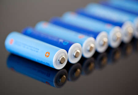 AA size NiMH batteries in a row with focus on the first one