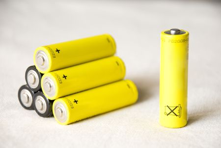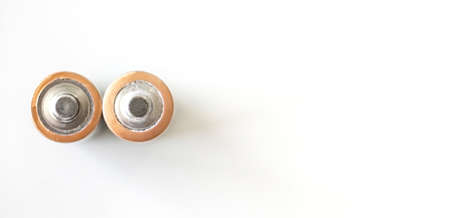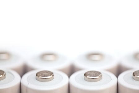 recycling of household batteries: several batteries are isolated on white, short focus, toning