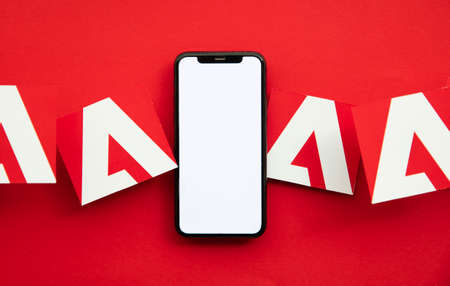 Bangkok, Thailand - April 17, 2020: Hand holding tablet with N or Netflix logo on dark background on red background. Netflix is famous global provider of streaming movies and series.