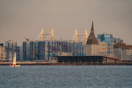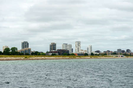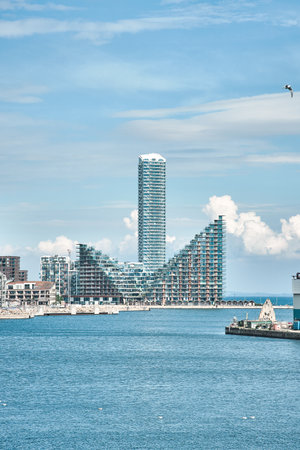 Beautiful modern buildings on the shores of the Baltic Sea in Copenhagen, Denmark. Contemporary European architecture. Architecture.