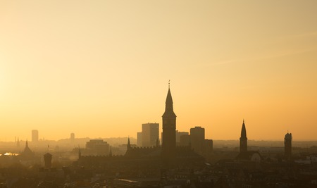City of Copenhagen, Denmark. Beautiful evening light with backlit buildings.