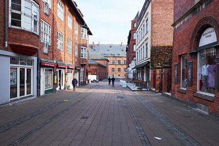 ELSINORE, DENMARK - APRIL 30, 2016: The deserted pedestrian streets of Elsinore, with low housing