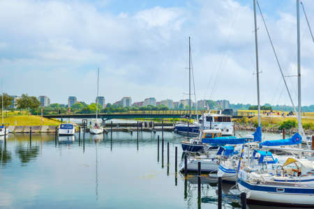 MALMO, SWEDEN - MAY 29, 2016: Urban sea coast with yacht harbor in Malmo, on May 29, Sweden. Malmo is the third largest city in Sweden with almost halv milion citizens in the urban area.
