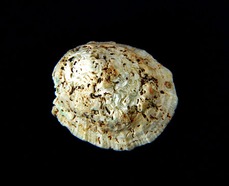 Mysterious sea shell with a rocky structure on the outside and pearly on the inside