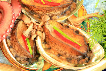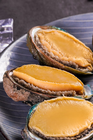 Closeup with abalone seafood and it has rich, flavorful, and highly prized meat that is considered a culinary delicacy. Among most expensive seafood found in Balambangan Island, Ku