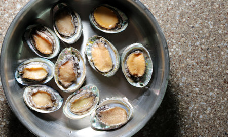 Healthy abalone in Korea. Fresh abalone in a stainless steel pot.