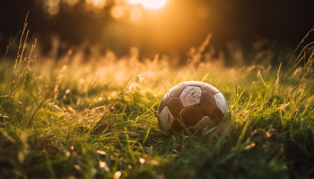 Playing soccer on green meadow, summer fun generated by artificial intelligence