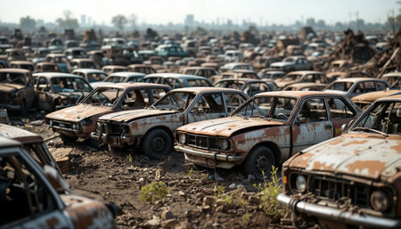 Abandoned Car Scrapyard with Wrecked Vehicles