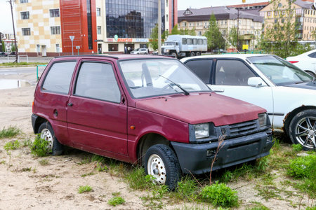 Novyy Urengoy, Russia - June 18, 2023: Abandoned minicar VAZ-1111 Oka in the city street.