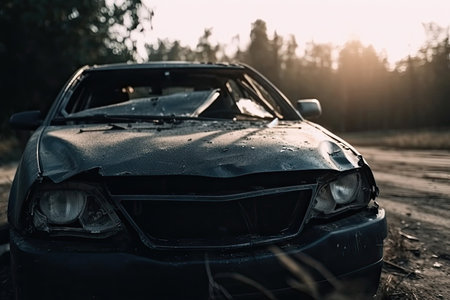 Wrecked Crashed car auto. Hit vehicle. Generate Ai