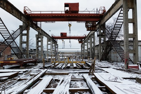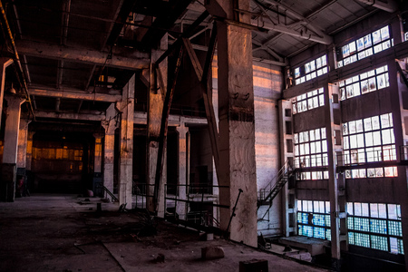 Abandoned Industrial workshop or plant of production for heavy industry factory.