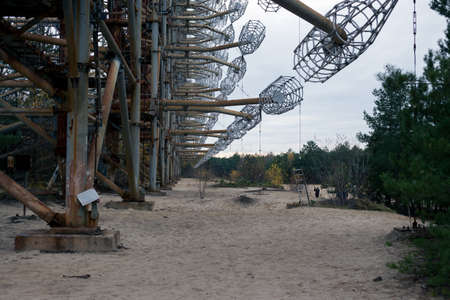 Duga - Soviet over-the-horizon OTH radar system. Duga-3 Russian Woodpecker - antenna complex, military object of USSR ABM. Chernobyl Exclusion Zone, Pripyat, Ukraine