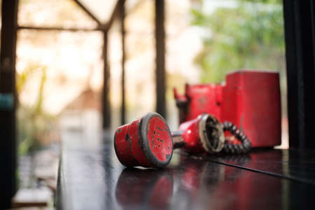 Abandoned old gas lighter on a wooden table. Selective focus.