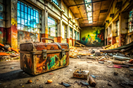 Abandoned Lunchbox in Urban Decay: Grungy Industrial Photo
