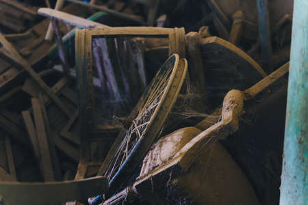 old abandoned house interior with broken furniture and empty windows. woodwork details in dust