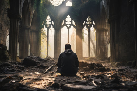 Single adult grappling with deep depression in a quiet holy sanctuary