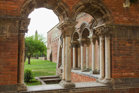 Italian church court cloister with marble columns. small GRIP shot