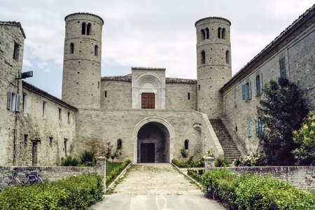 Church of San Claudio al Chienti (Marches, Italy), with two cylindrical towers