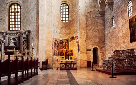 Bari, Puglia, Italy - April 30, 2019: Inside interior of Basilica of Saint Nicholas Basilica di San Nicola , a church in Bari. Roman Catholic Church in region of Apulia