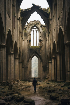 Gothic Twilight Serenity Individual Contemplation Among Ancient Ruins, Embracing Mindfulness