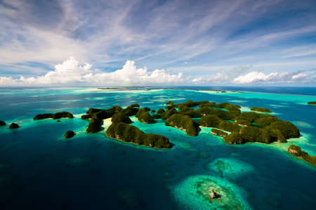 Scenic lagoon of Palau is characterized by hundreds of limestone islands