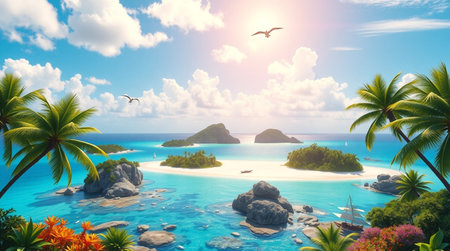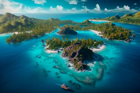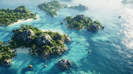 Aerial view of an exotic tropical paradise with turquoise water