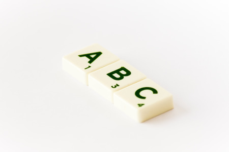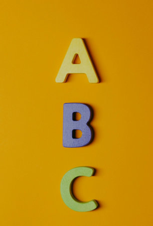 Wooden letters forming the word ABC on a yellow background. Education concept.