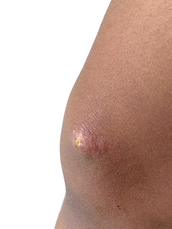 Photo of a pimple with pus on the back of a man