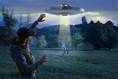 Man being abducted by UFO - alien abduction concept