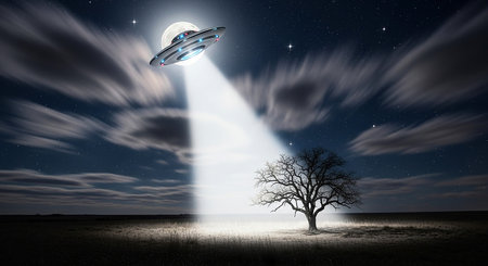 An intriguing image capturing a captivating scene of alien abduction, evoking a sense of mystery and fascination.