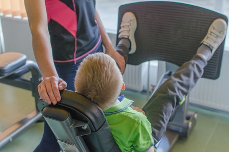 Young boy is training in the gym