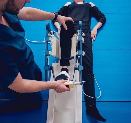 Physical therapy mecical clinic physiotherapy treatment for knee injury and rehabilitation after surgery.