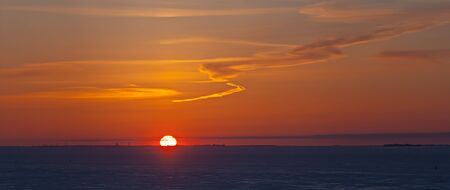 Sunset over the sea in the evening. Beautiful natural background.