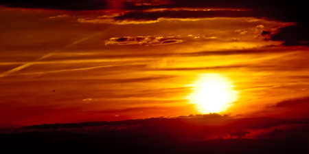 Beautiful Red Sky with sun and clouds