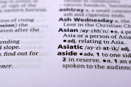 Close Up Of English Dictionary Page With Word - Asiatic