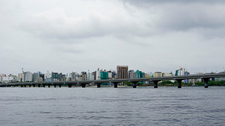 Panorama of african town Lagos from riverside. Nigeria, Africa