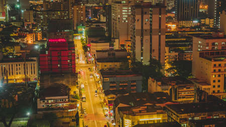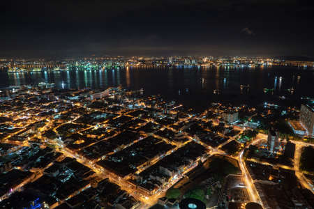 George Town, Penang/Malaysia - Jun 18 2017: Aerial view UNESCO World heritage Georgetown in night.