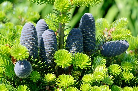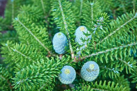 Fir tree (Abies koreana) with fresh cones