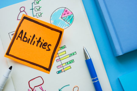 Notepad page with graphs and sticker with inscription abilities.