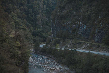Scenic road among the mountains of Abkhazia, the car transportation is driving along country road highway
