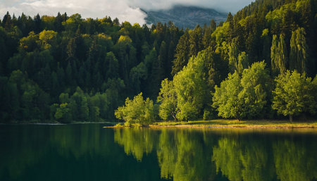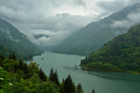 Natural landscape with a view of lake Ritsa, Abkhazia.