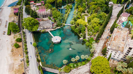 Adler Sochi is a resort town. flying a drone. High quality photo